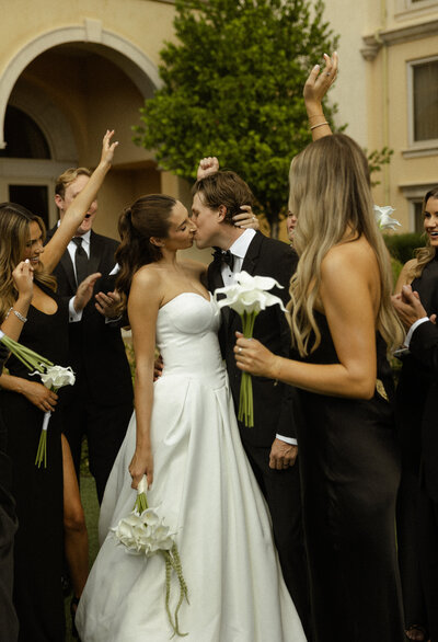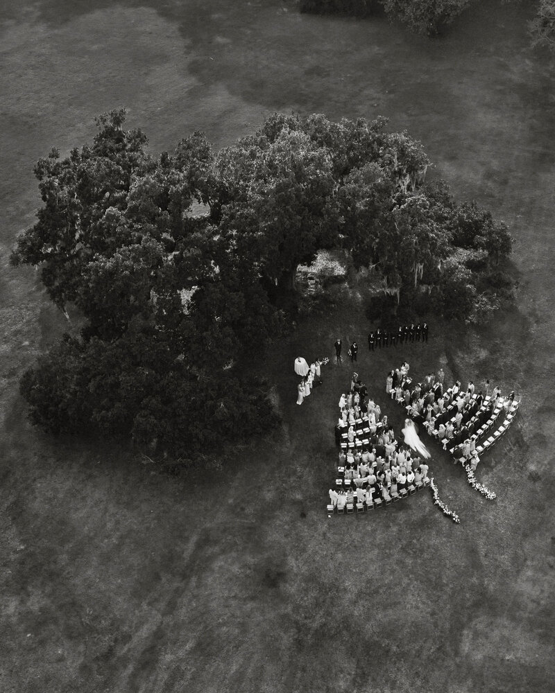 To kick things off, my husband flew our drone over the tree to capture this stunning angle. As a photographer, most of the ceremony is focusing on capturing reactions after snapping the traditional shots. Per request from Ashlee, me and my husband captured both forwards and backwards angles of the kiss and exit. We ended up getting in each other's shot but it was no problem with a bit of photoshop magic!